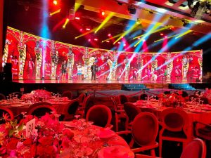 Décors et équipement high-tech : lighting led, sound et visual system, régie, techniciens et mur de led vidéo mis à votre disposition.